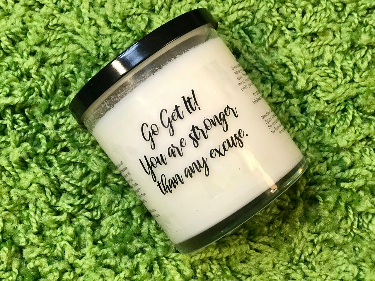 Ingredients: Each candle is hand poured with 100% soy wax, essential oils/fragrance oils, and cotton wicks.